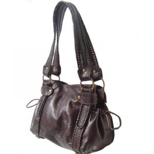 Preppy-chic, this flirty and sweet style by is made in dark browen genuine soft leather embellished by simple hardware and a front bow.